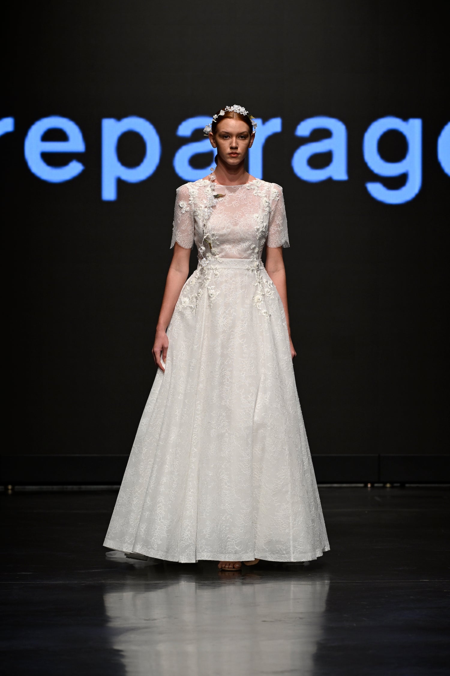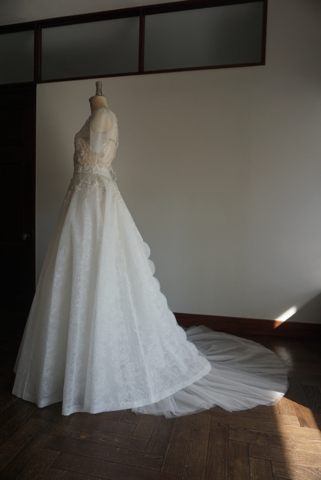 In contrast to the delicate appearance of the dainty lace pattern, it has a structured silhouette.