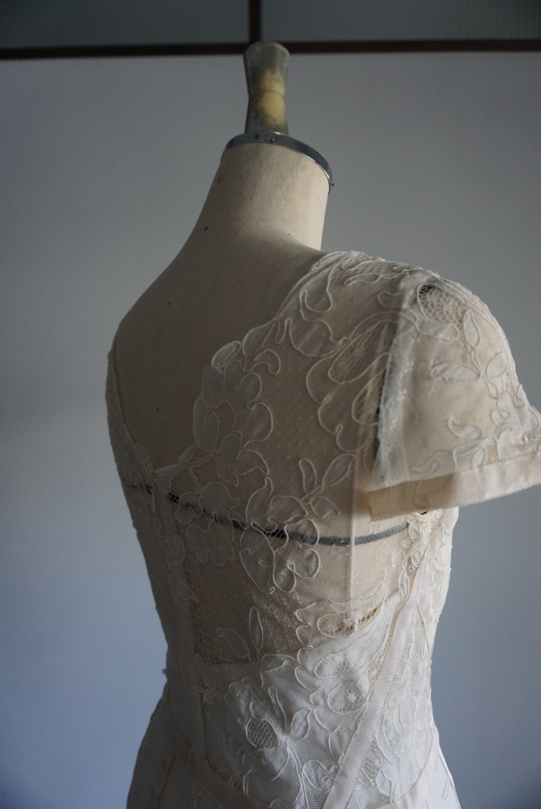 フランス製のリバーレースの一種で、1800年代に作られた機械で織られています。