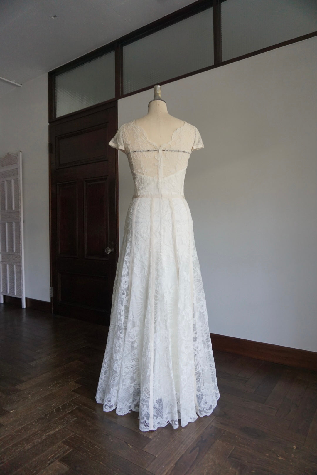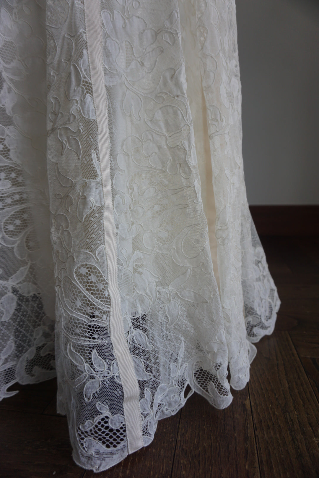 世界でたった3台しかない貴重な機械で作られるこのレースは、多数の柄で構成され、さらにコード刺繍が施されています。