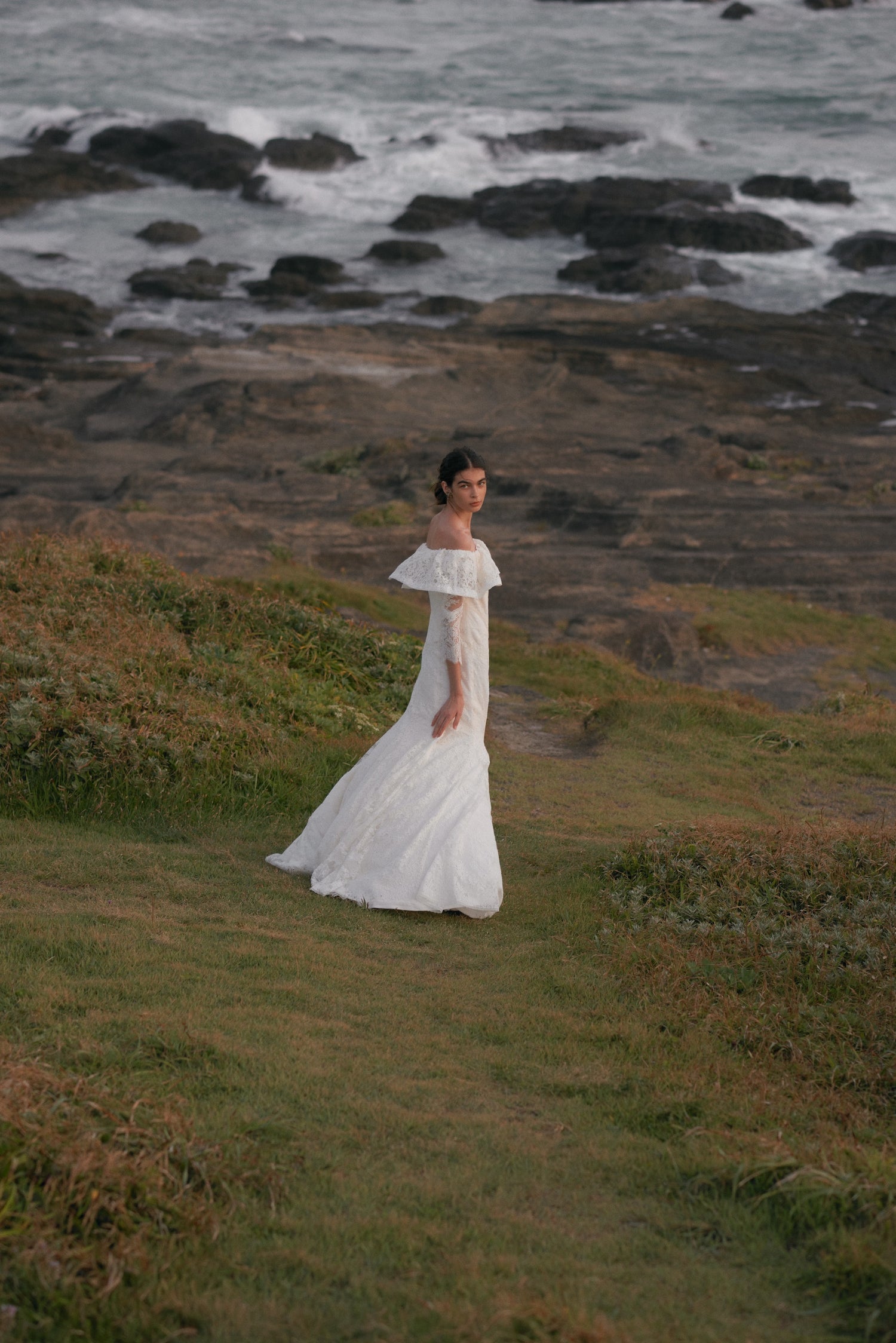 オフショルダーデザインに、お袖をつけエレガントに。
