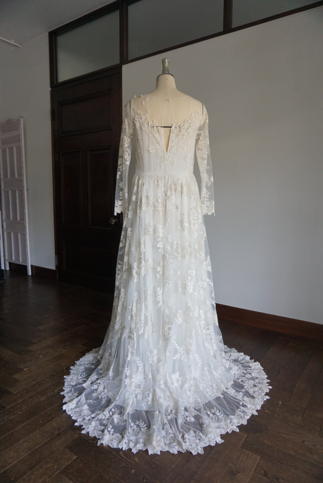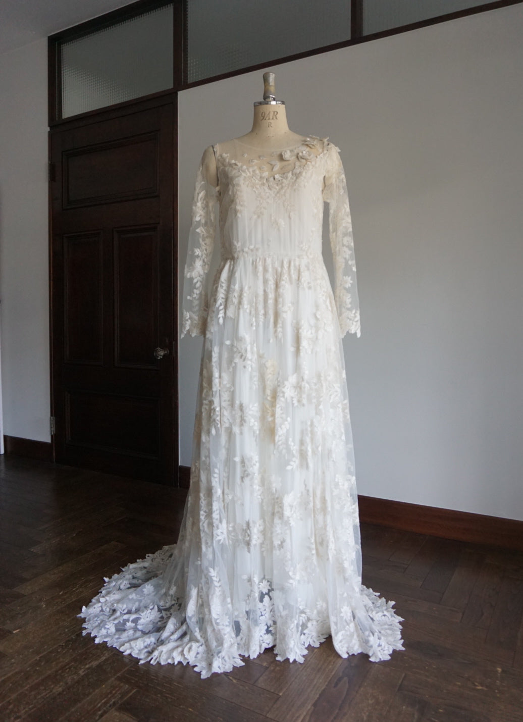 また、裾部分にはレースのスカラップを使用し、さらに豪華さが増しています。