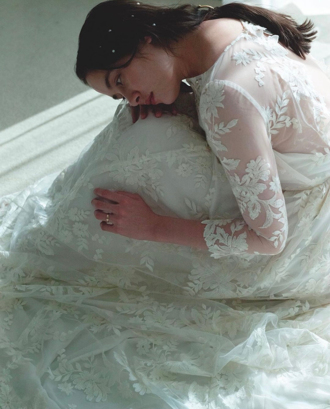 レースの刺繍はオフからアイボリーの2色使いでグラデーションになっています。