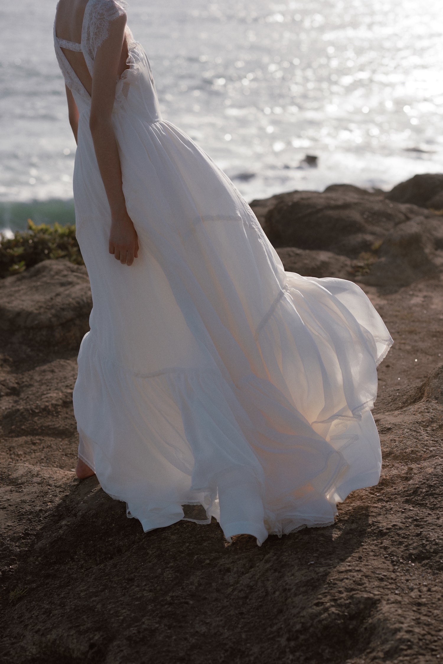バックスタイルはレースで華奢に。大人フェミニンなドレスです。
